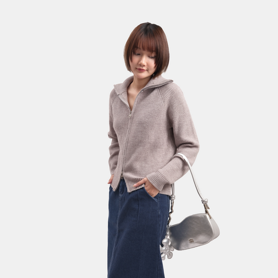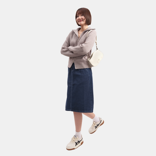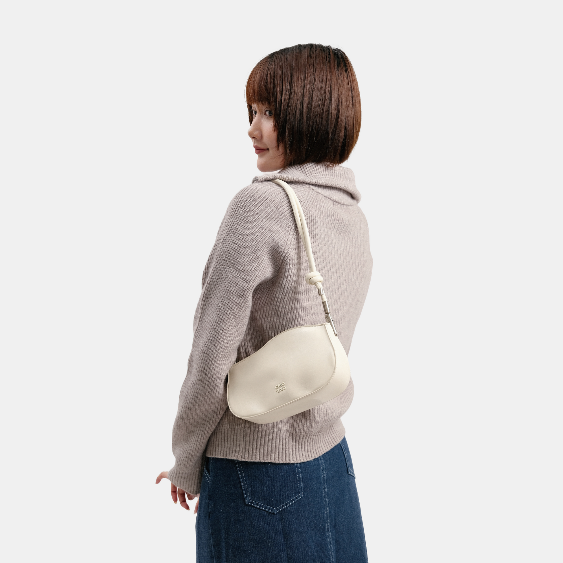 Chiếc túi xách da với thiết kế hộp đứng form, có viền sóng đơn giản ở phần miệng túi. Quai đeo bạn có thể sử dụng theo hai cách: đeo vai hoặc cầm tay tuỳ thích. Túi không kèm charm.