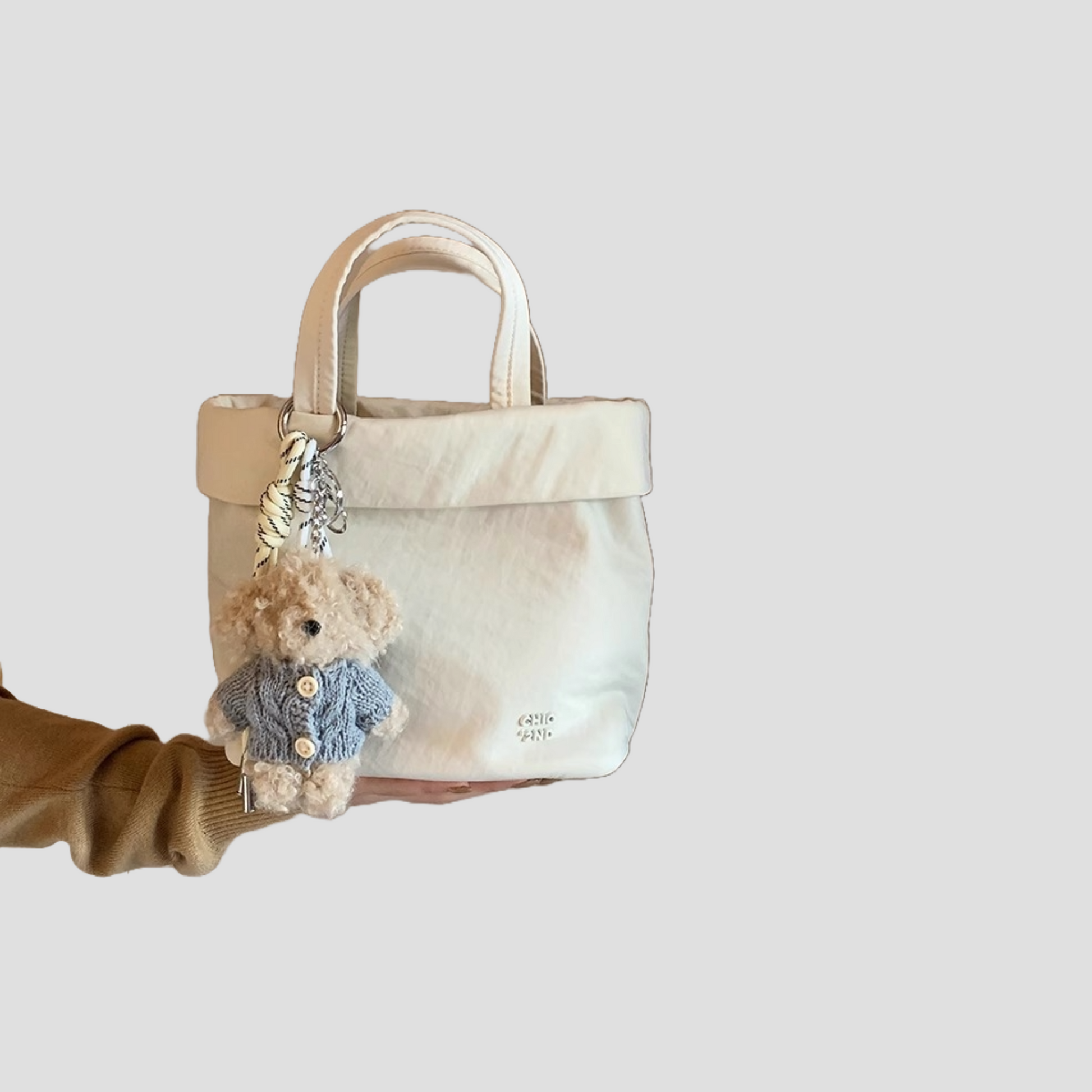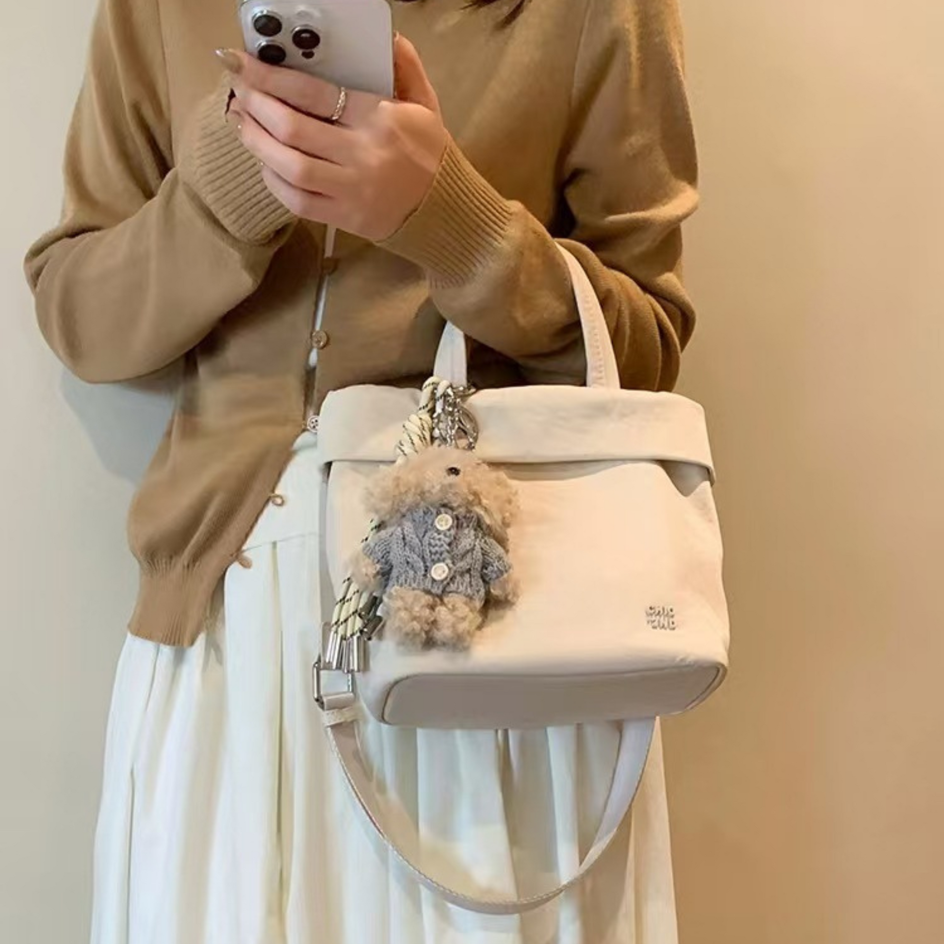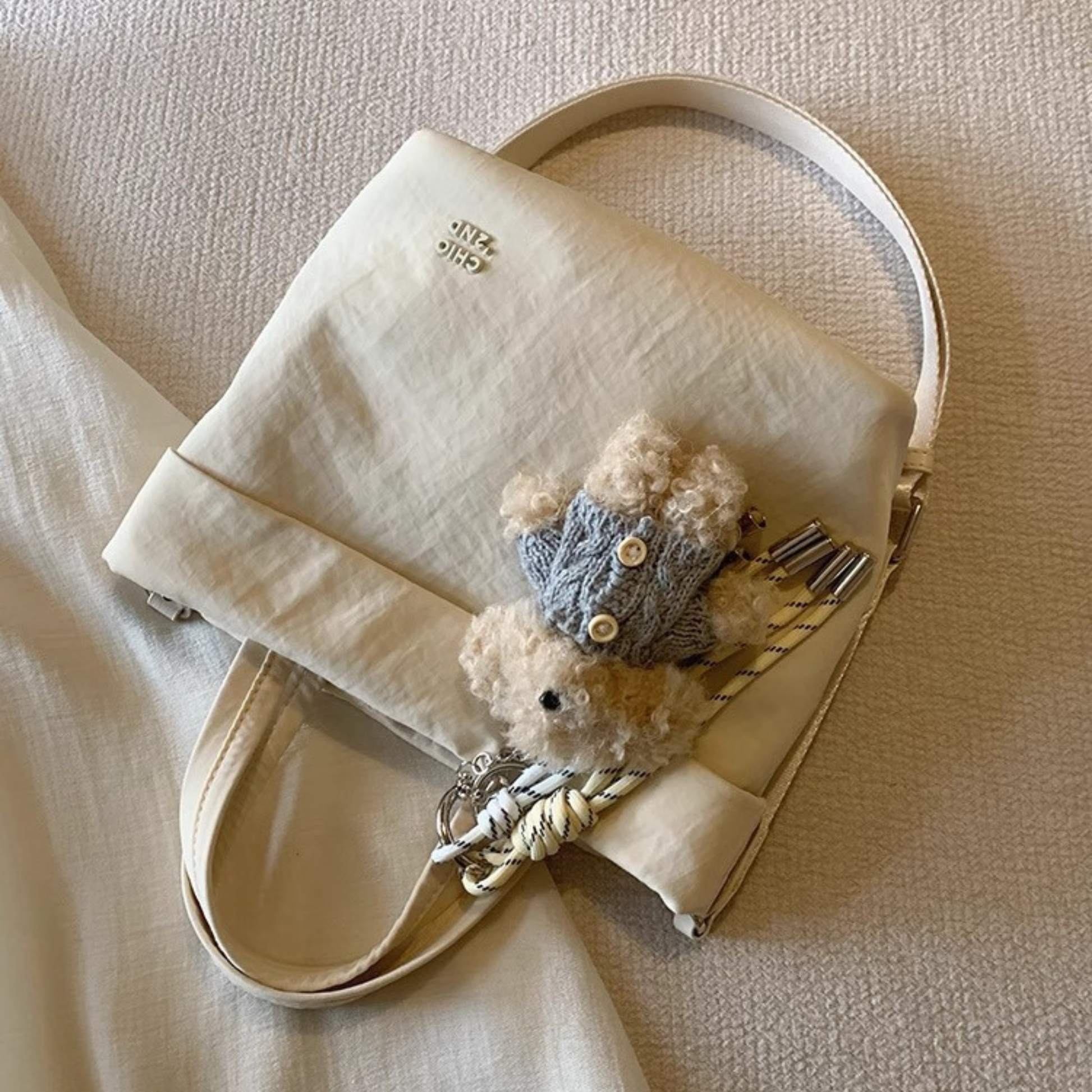 Túi Xách Vải Nhỏ Gọn Phối Charm Gấu