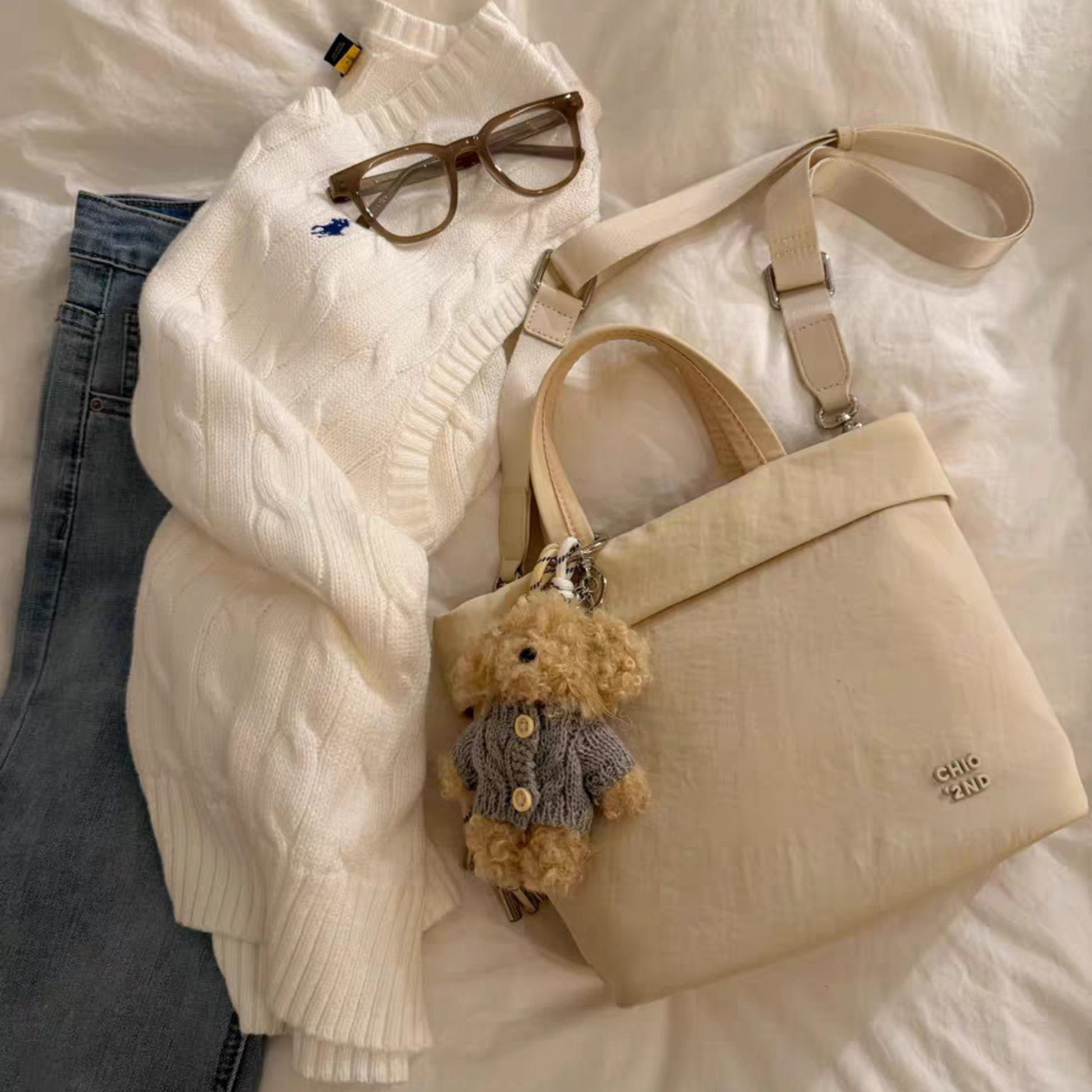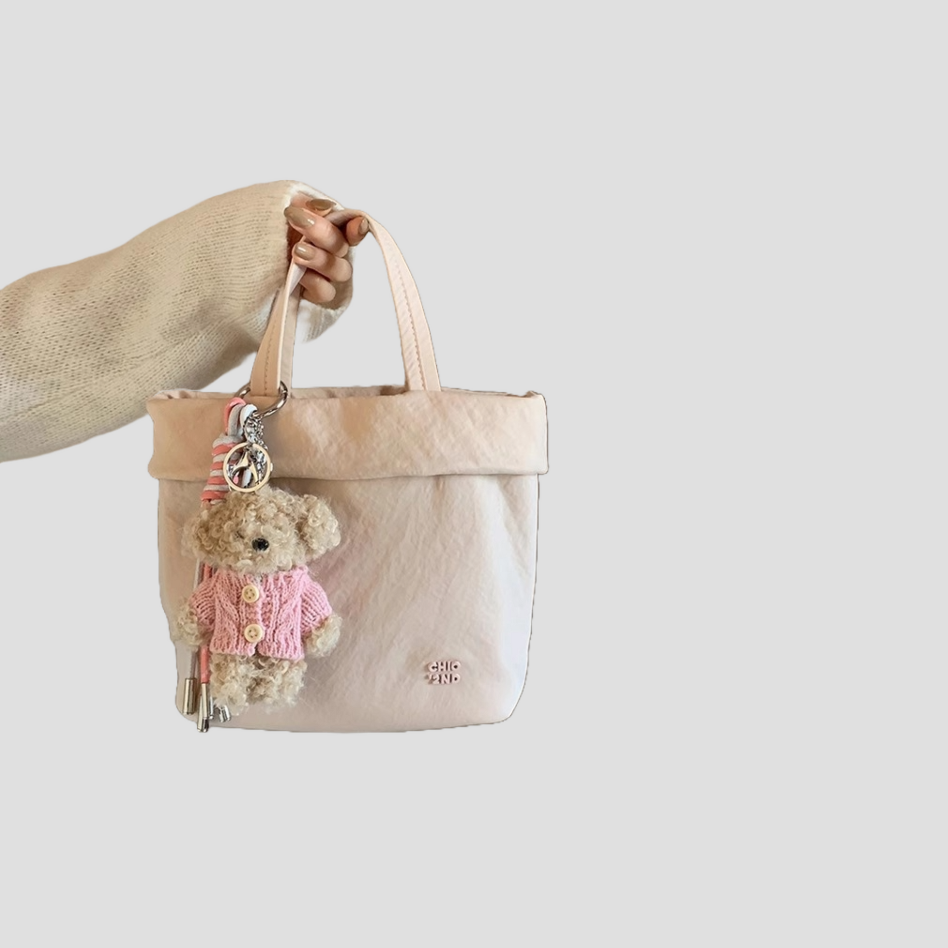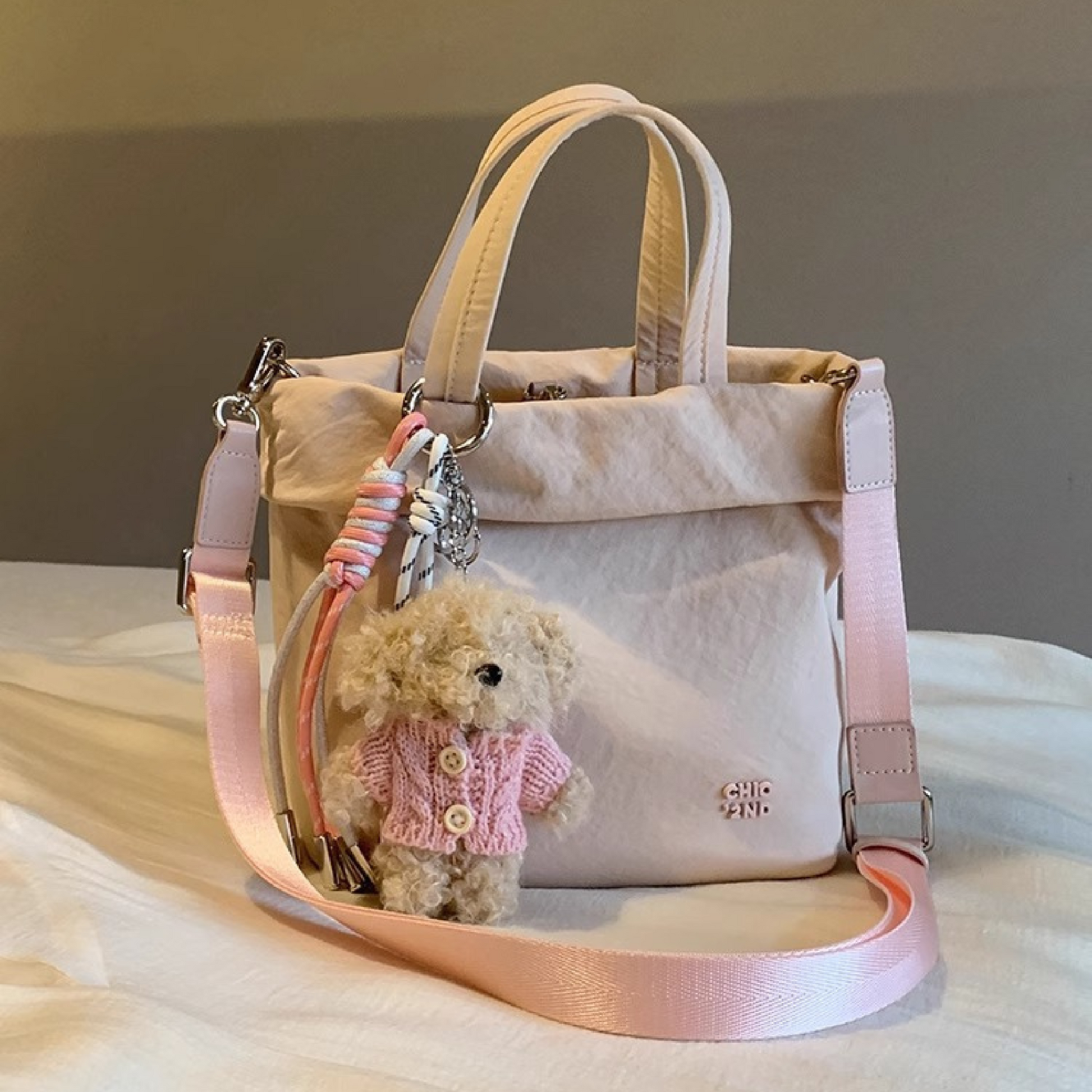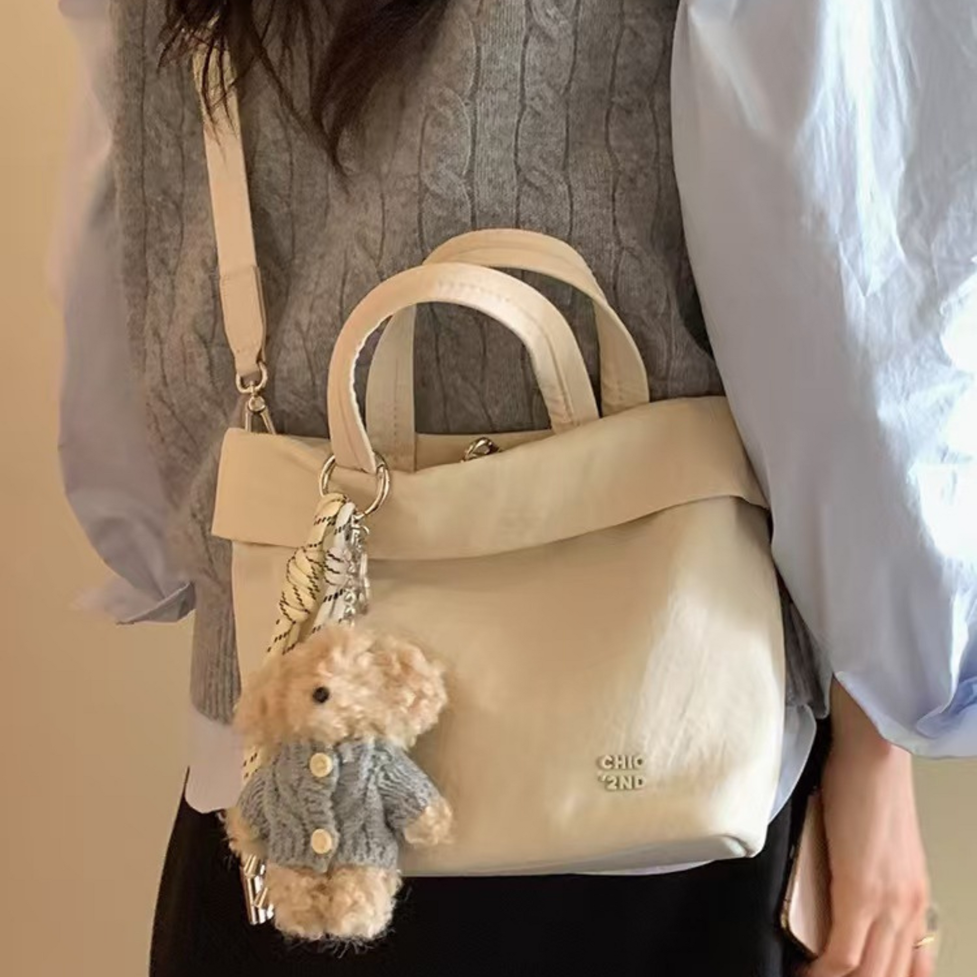 Túi Xách Vải Nhỏ Gọn Phối Charm Gấu