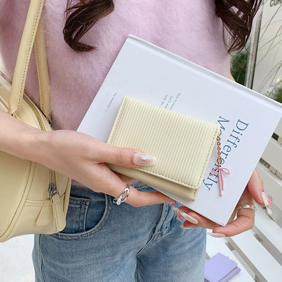 Ví Cầm Tay Da Nắp Gập Phối Nhung