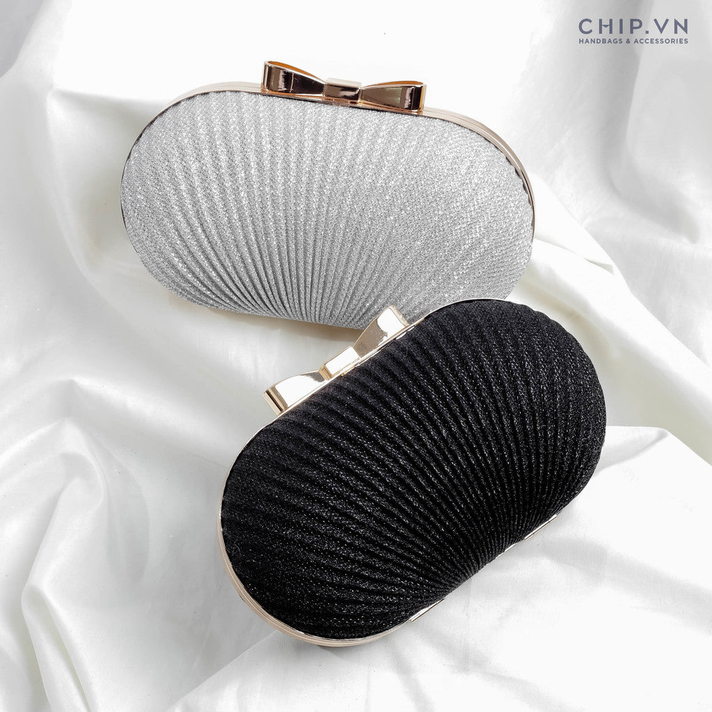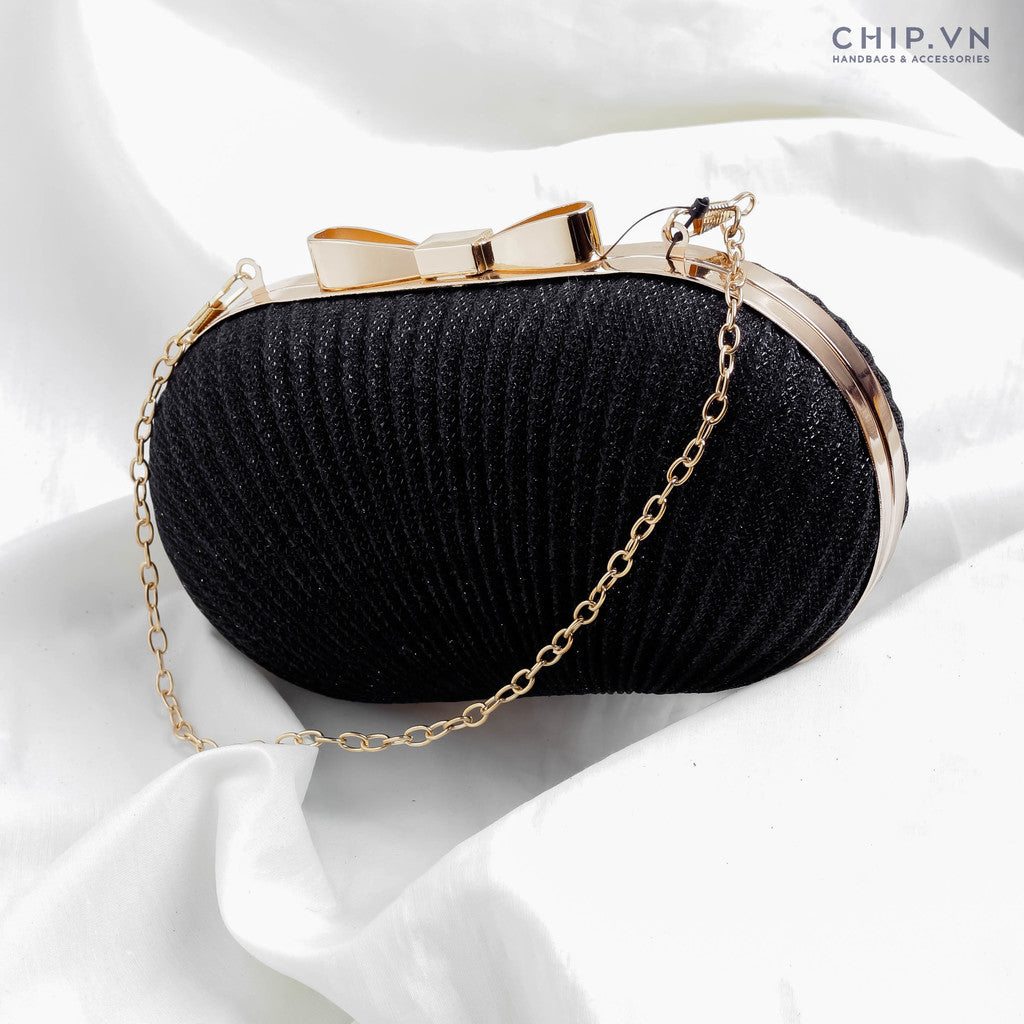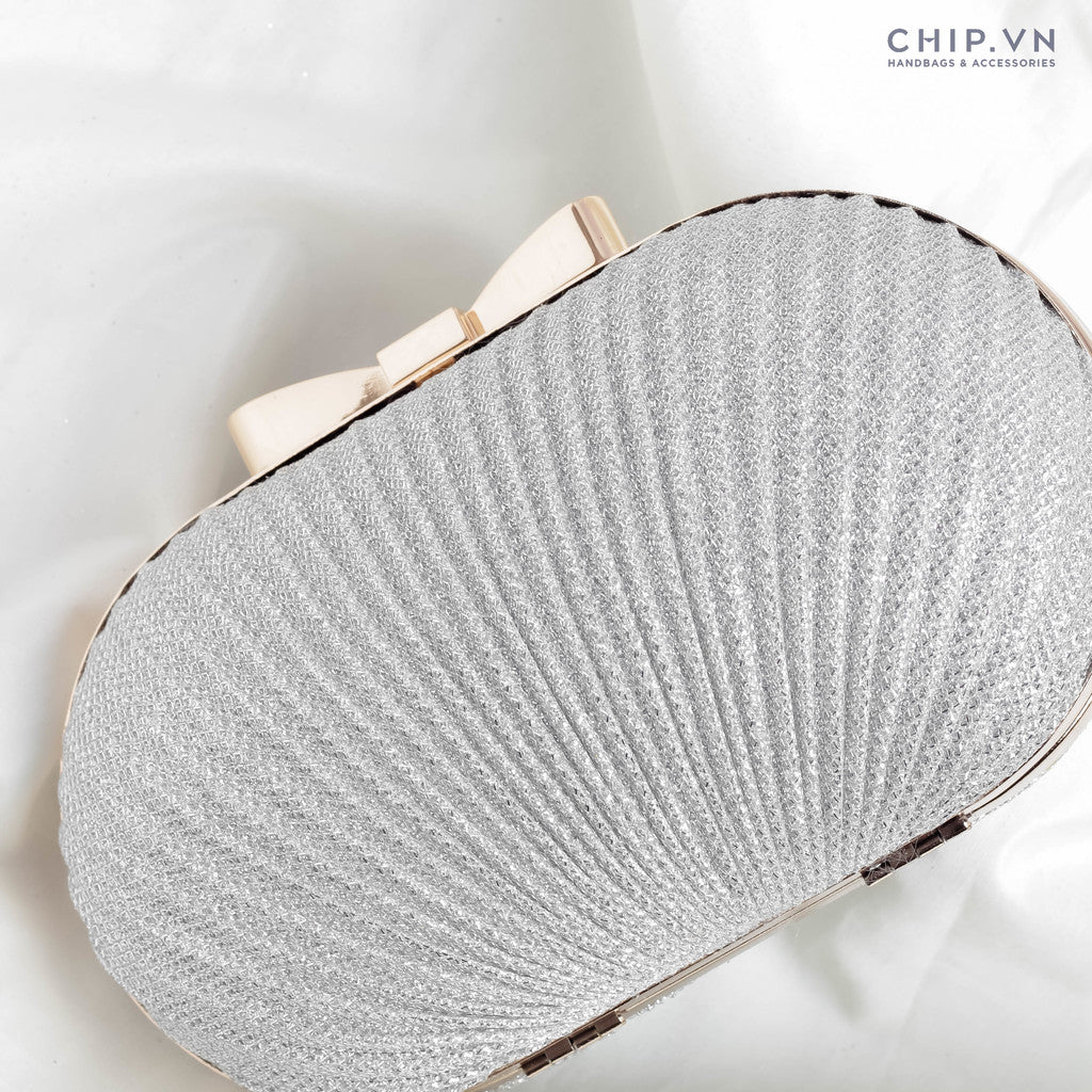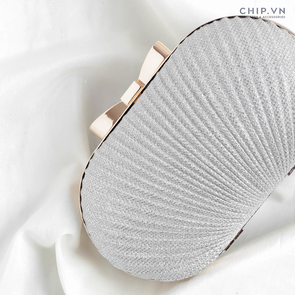 Một chiếc clutch cầm tay chắc chắn sẽ là phụ kiện không thể thiếu khi sánh đôi cùng nàng trong các bữa tiệc. Clutch có thiết kế form gọn nhẹ kết hợp khoá nơ kim loại và lớp vải kim tuyến lấp lánh tạo nên ánh nhìn sang trọng. Ngoài ra còn đi kèm dây xích tháo rời để xách tay tuỳ ý. Dễ dàng phối hợp với mọi trang phục từ nhẹ nhàng đến cá tính quyến rũ, giúp nàng nổi bật và ghi lại dấu ấn khó phai trong lòng người đối diện.