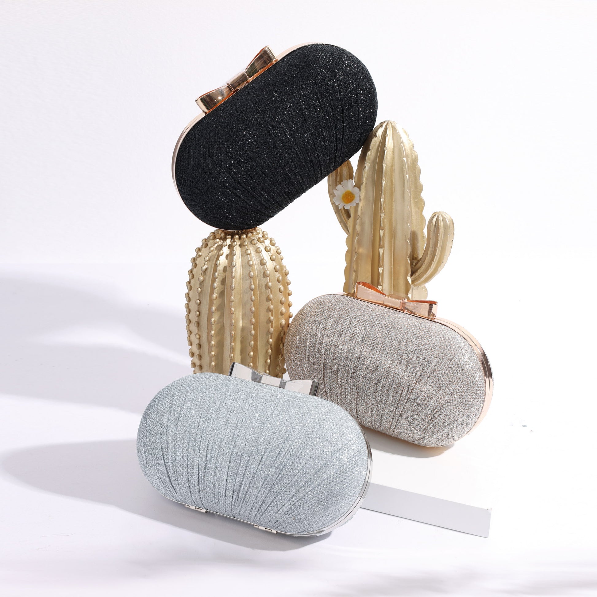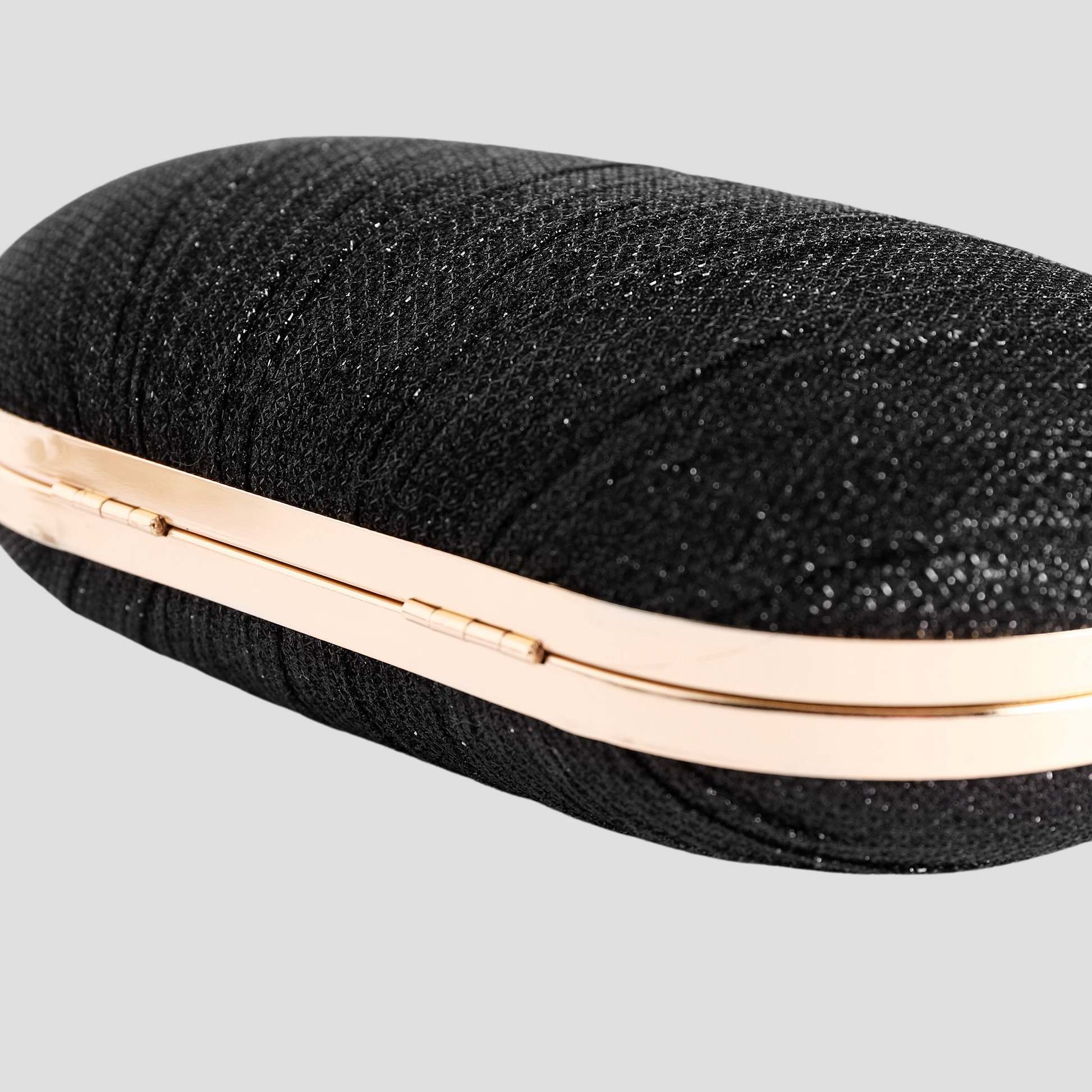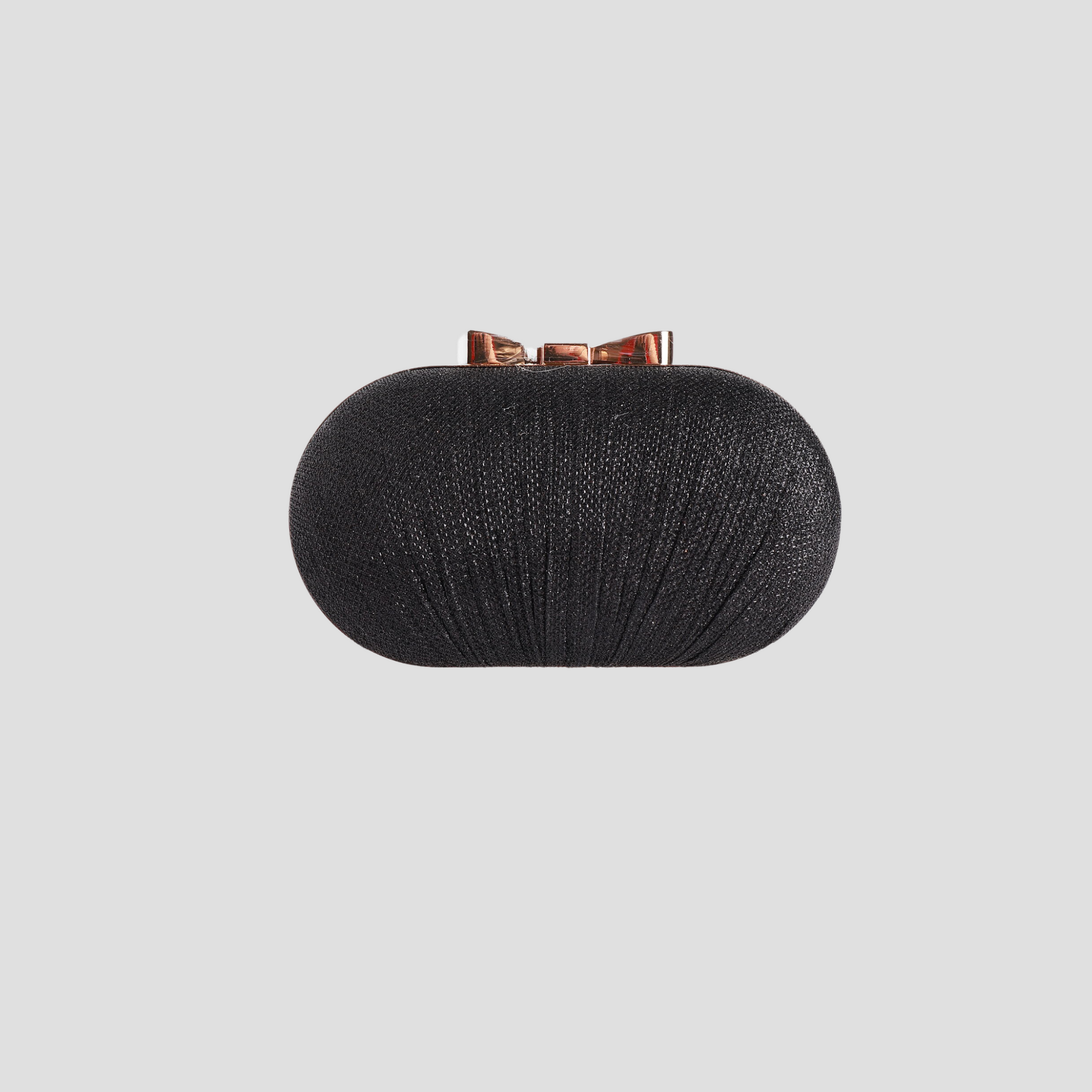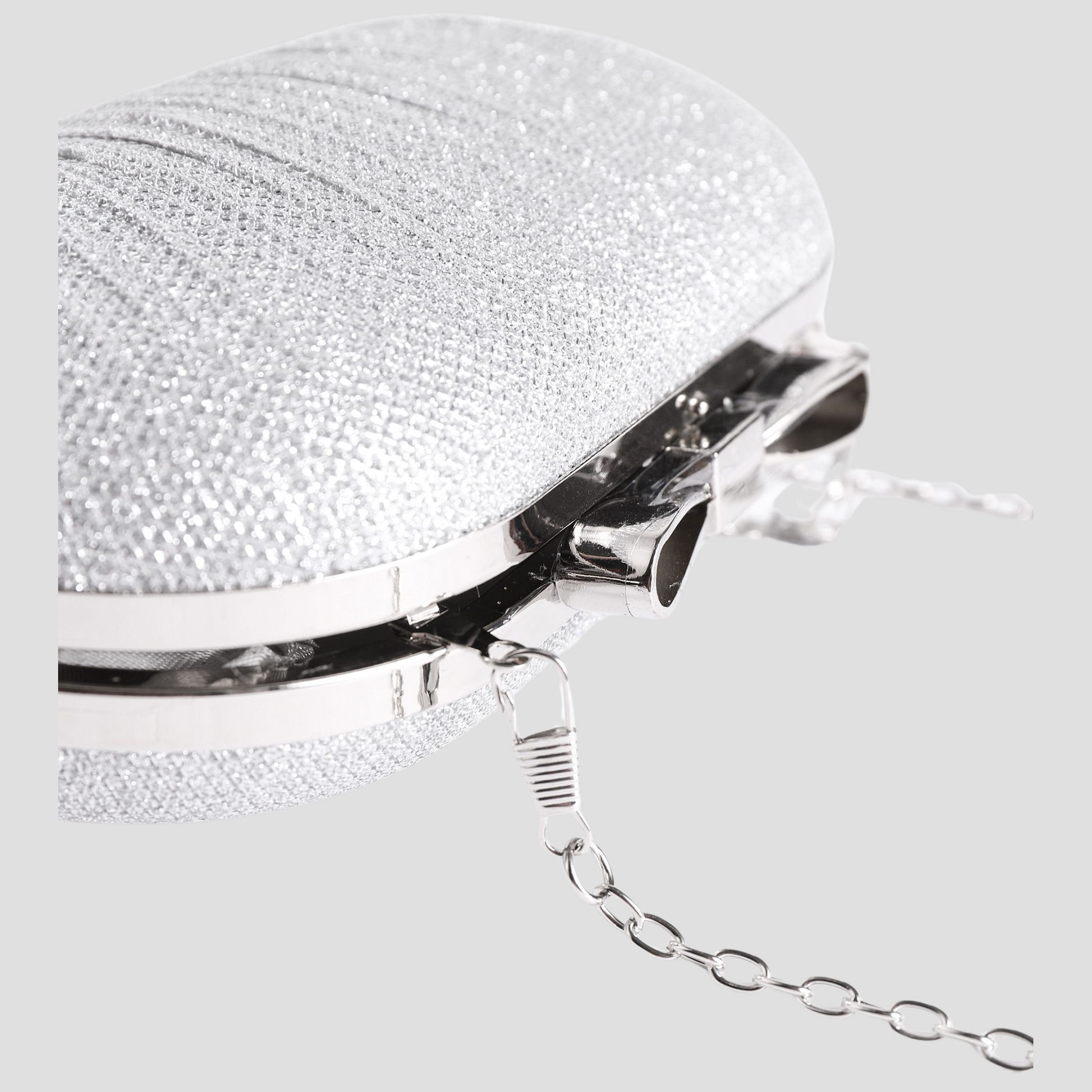 Một chiếc clutch cầm tay chắc chắn sẽ là phụ kiện không thể thiếu khi sánh đôi cùng nàng trong các bữa tiệc. Clutch có thiết kế form gọn nhẹ kết hợp khoá nơ kim loại và lớp vải kim tuyến lấp lánh tạo nên ánh nhìn sang trọng. Ngoài ra còn đi kèm dây xích tháo rời để xách tay tuỳ ý. Dễ dàng phối hợp với mọi trang phục từ nhẹ nhàng đến cá tính quyến rũ, giúp nàng nổi bật và ghi lại dấu ấn khó phai trong lòng người đối diện.